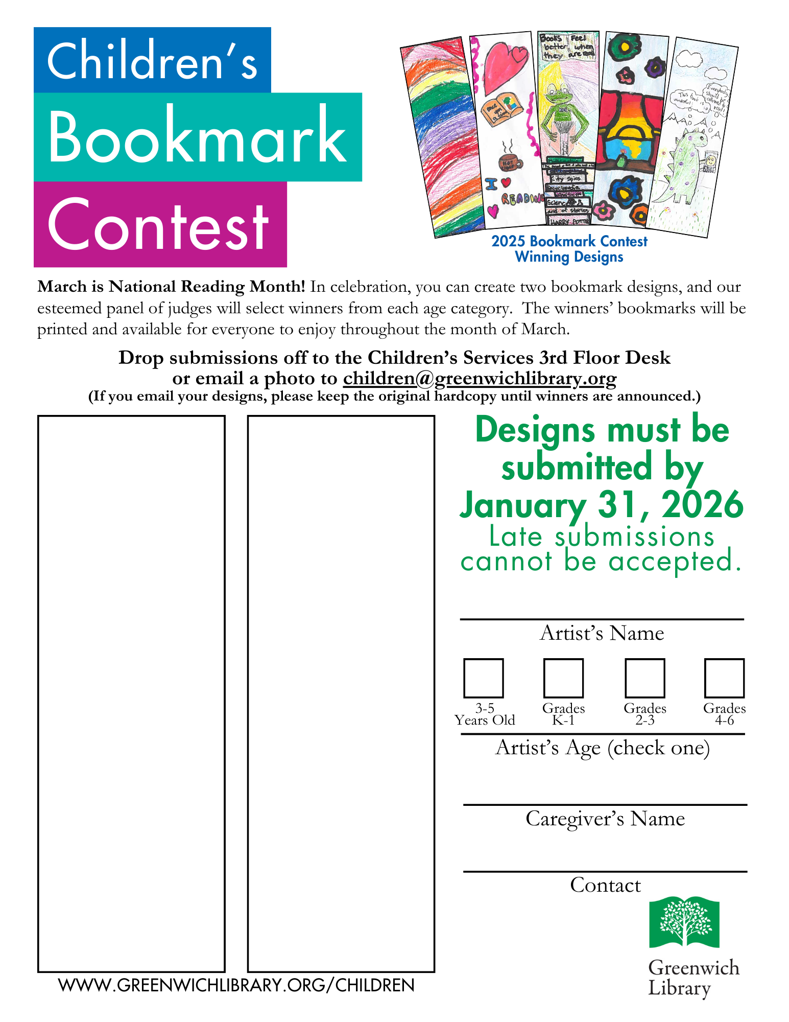 Need assistance? Contact our Children’s Librarians by emailing children@greenwichlibrary.org or call 203-622-7940.